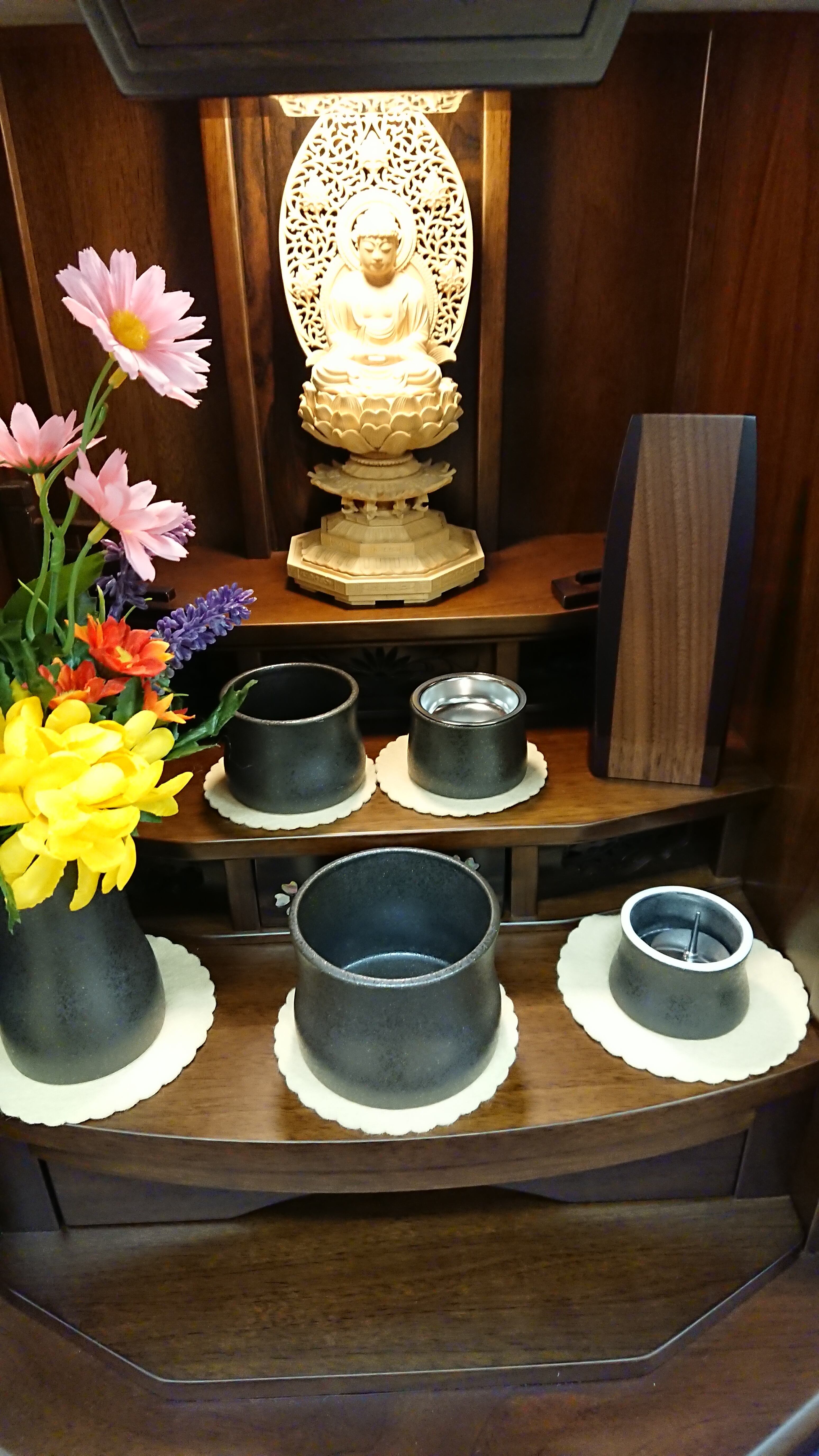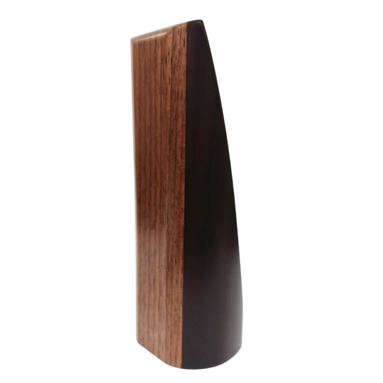 4.5寸のお位牌の中では高さが15㎝と低く、斜めにカットされた札板部分にはとても見やすくはっきりと大きな字彫りが可能です。ウォールナットとグラナディロの木材を使い、ツートンカラーの『かぐや ローズ』は、丸みを帯びていて、温かみのあるデザインです。