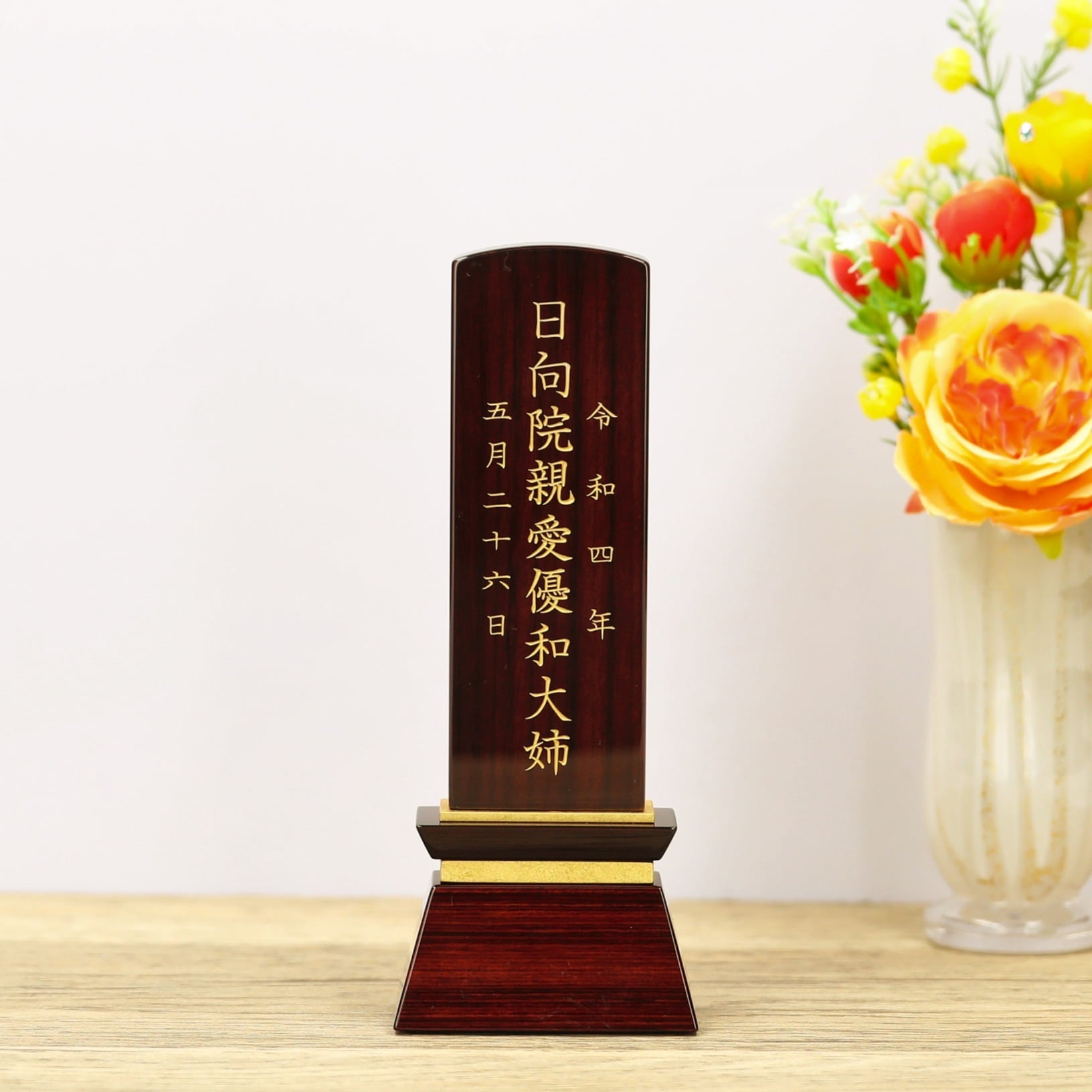 小さめのサイズ感とかわいらしさを取り入れたデザインがより故人を身近に感じられるお位牌です。