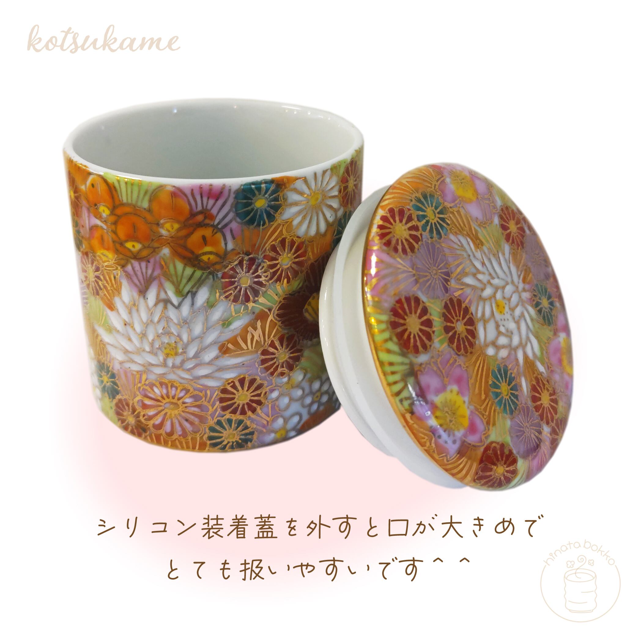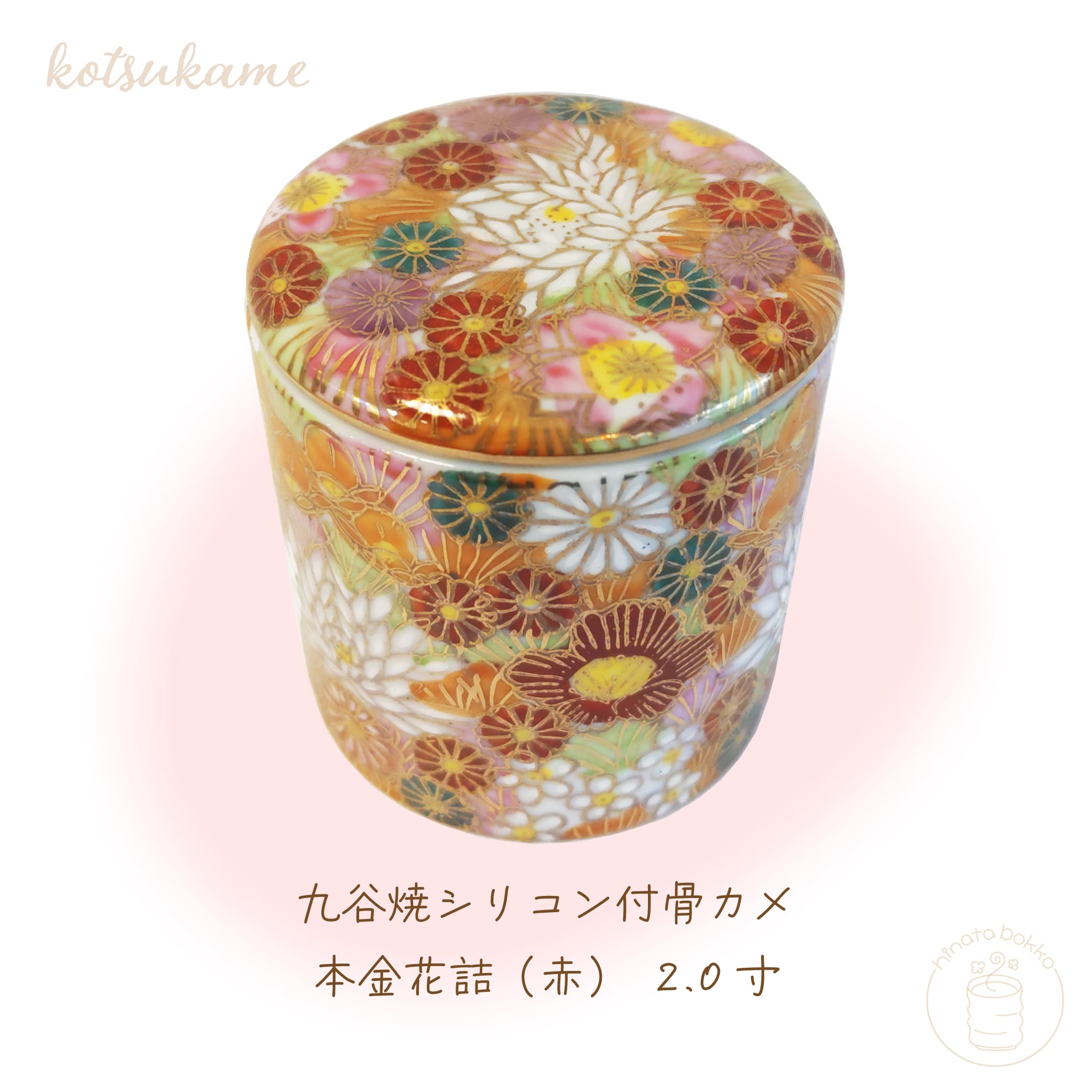 九谷焼シリコン付骨カメ 本金花詰(赤)